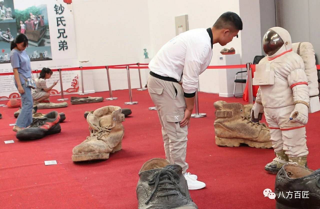 他们的陶瓷雕塑作品吸引了很多人的眼球,都觉得作品非常惊艳,纷纷留影拍照,很多观众认为这只是真的放大的物品,当确认听到工作人员说是陶瓷作品时,既惊诧又深有感触。钞氏兄弟作品的独特性,东方红精神,鞋履所特有的文化内涵,以及超大体量陶瓷雕塑都是绝无仅有的。这些陶瓷作品让很多观众朋友想起那个特殊的年代。