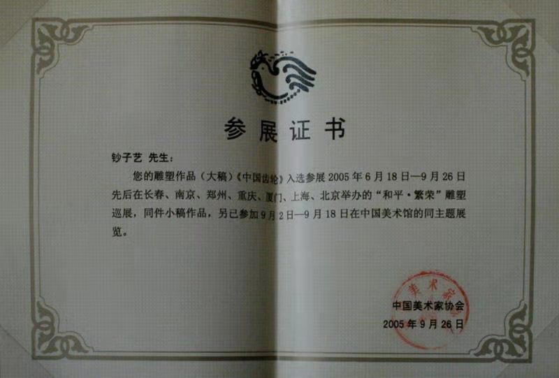 钞氏兄弟作品《中国齿轮》2005年参加抗战六十周年美展,后被南京市政府与厦门市政府收藏;