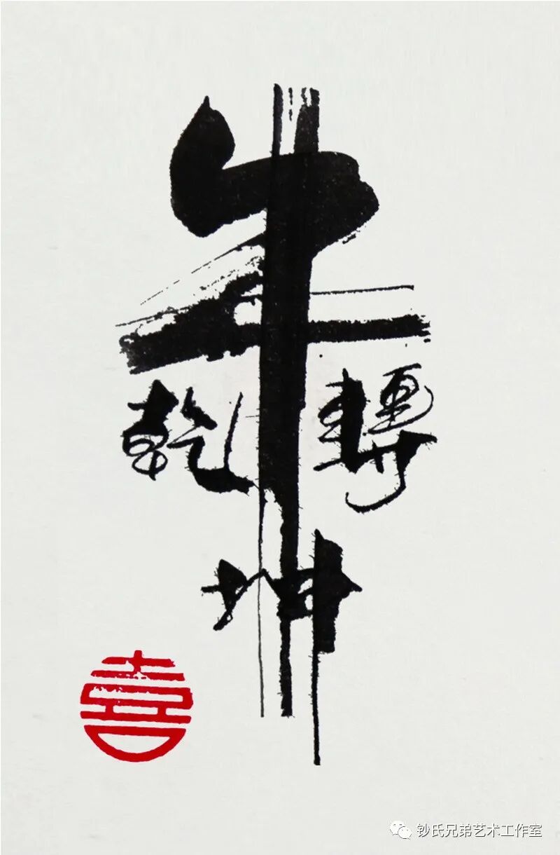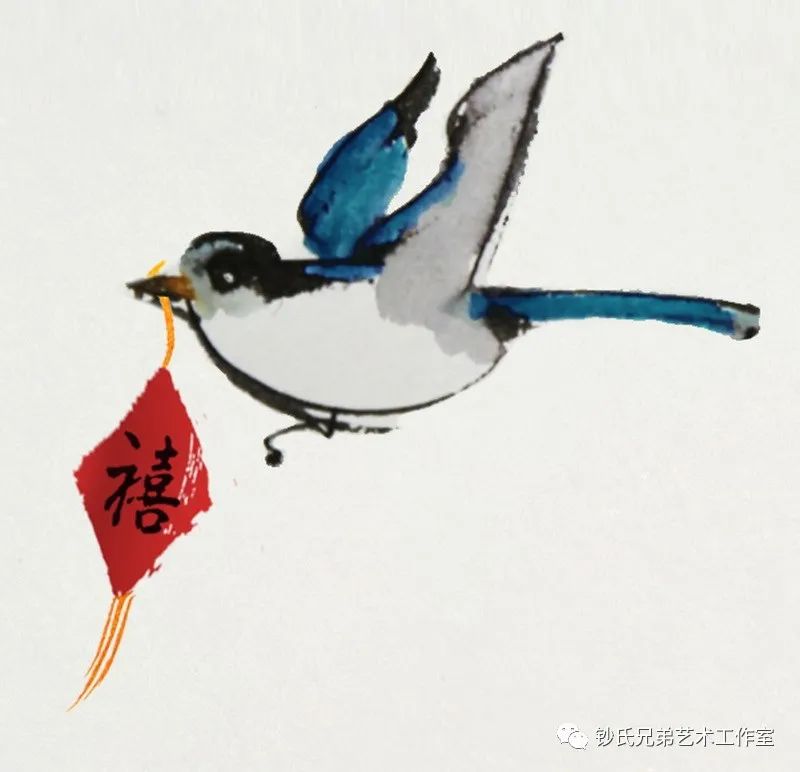 墨色线条牛 一只"喜鹊"衔"喜"字与一个拦边章"喜“呼应