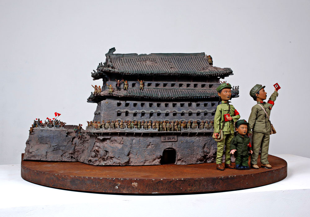 作品用比较诙谐荒诞的手法,把文革那个感性冲天,理性放假特定时代浓缩定格在一个画面上。虽然,今天我们再回顾那段历史时,觉得那个时代的人们是那样的无知与可笑,但经历过那个年代的很多人,无不是怀着崇高的敬意和真诚,满怀着热情把全部的青春献给那个蒙昧的时代。