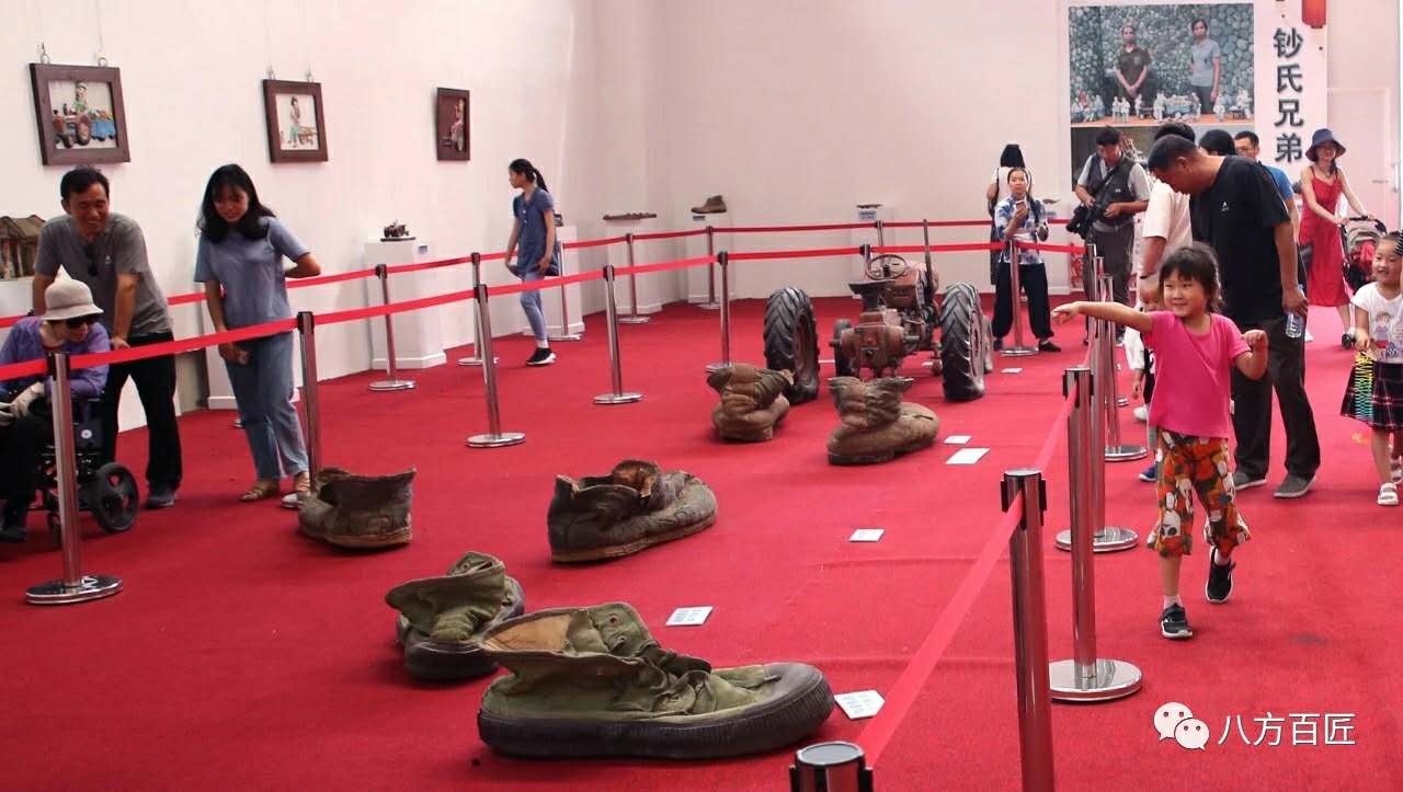 他们的陶瓷雕塑作品吸引了很多人的眼球,都觉得作品非常惊艳,纷纷留影拍照,很多观众认为这只是真的放大的物品,当确认听到工作人员说是陶瓷作品时,既惊诧又深有感触。钞氏兄弟作品的独特性,东方红精神,鞋履所特有的文化内涵,以及超大体量陶瓷雕塑都是绝无仅有的。这些陶瓷作品让很多观众朋友想起那个特殊的年代。